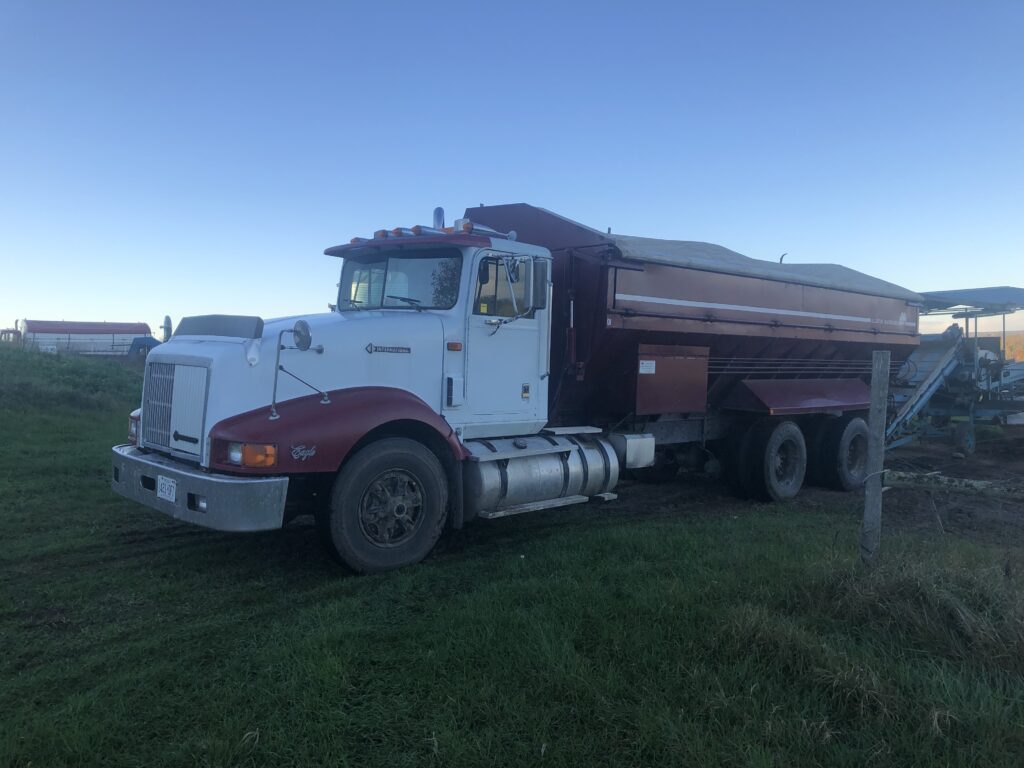 I had helped out a family friend with his potato harvest. We were sitting on the back of a harvester, the harvester was made in a way that 4 people could stand on the back and could pick out rocks, grass and weeds, or whatever comes across the conveyor so that there is less of that in the truck and more potatoes.